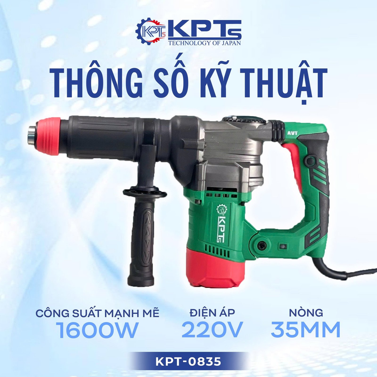 Máy đục KPT-0835 chính là lựa chọn đáng tin cậy cho anh em thợ chuyên nghiệp đang cần sức mạnh thật – độ bền thật – làm việc lâu dài.