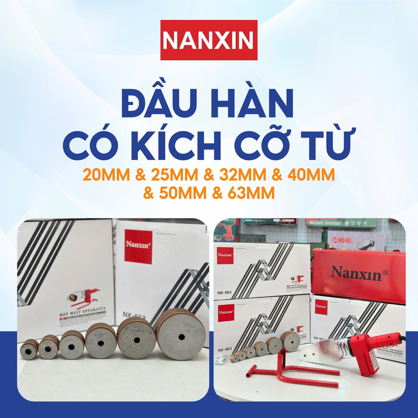 Nanxin NX-563 hỗ trợ hàn ống nhựa với đường kính từ 20mm đến 63mm. Đây là khoảng kích thước phổ biến trong hầu hết các công trình điện nước hiện nay. Nhờ khả năng hàn đa năng, người dùng có thể thoải mái xử lý từ những đường ống nhỏ trong gia đình cho đến hệ thống ống lớn tại công trình xây dựng.