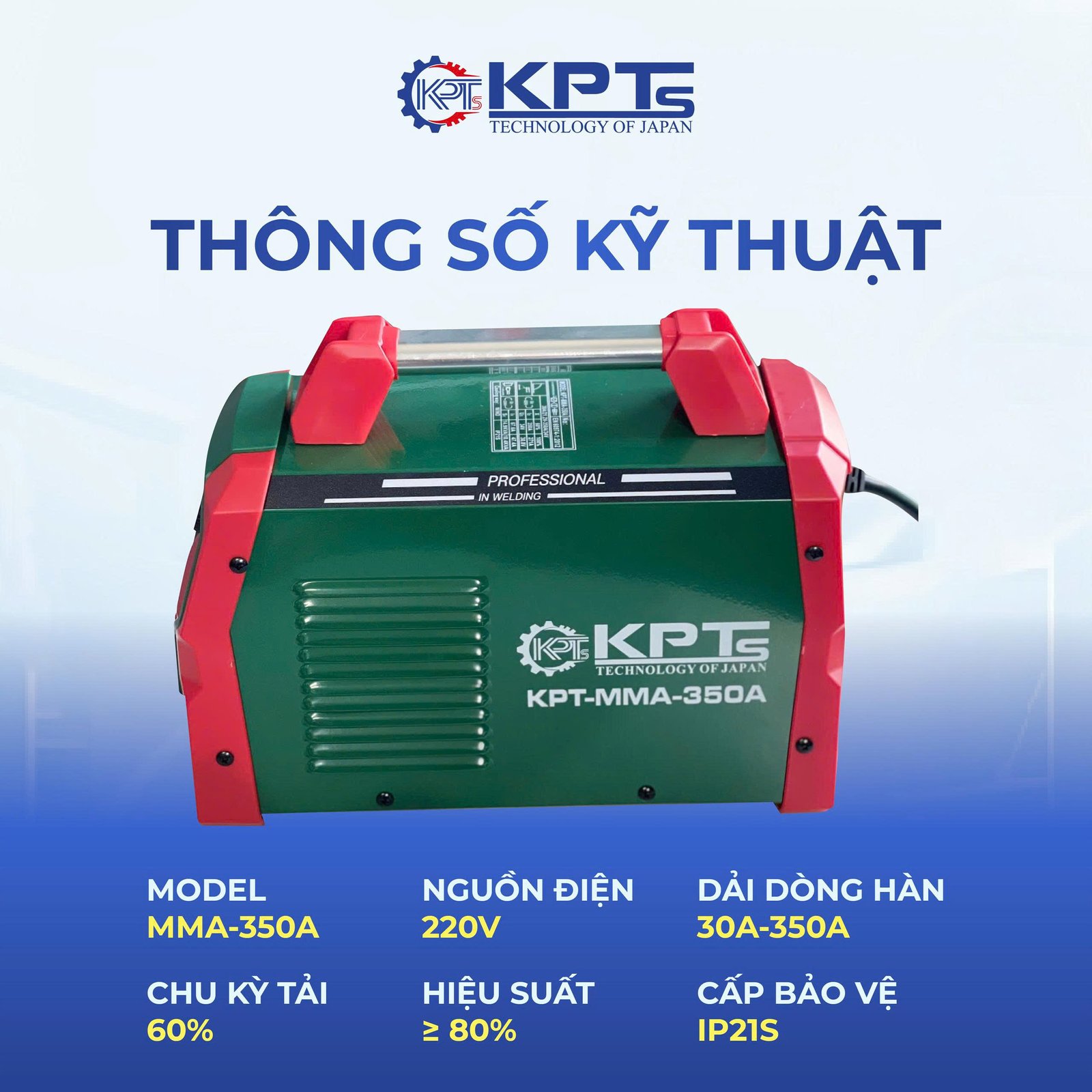 Với hiệu suất ≥ 80% và hệ số công suất cao, máy hàn KPT MMA-350A giúp: