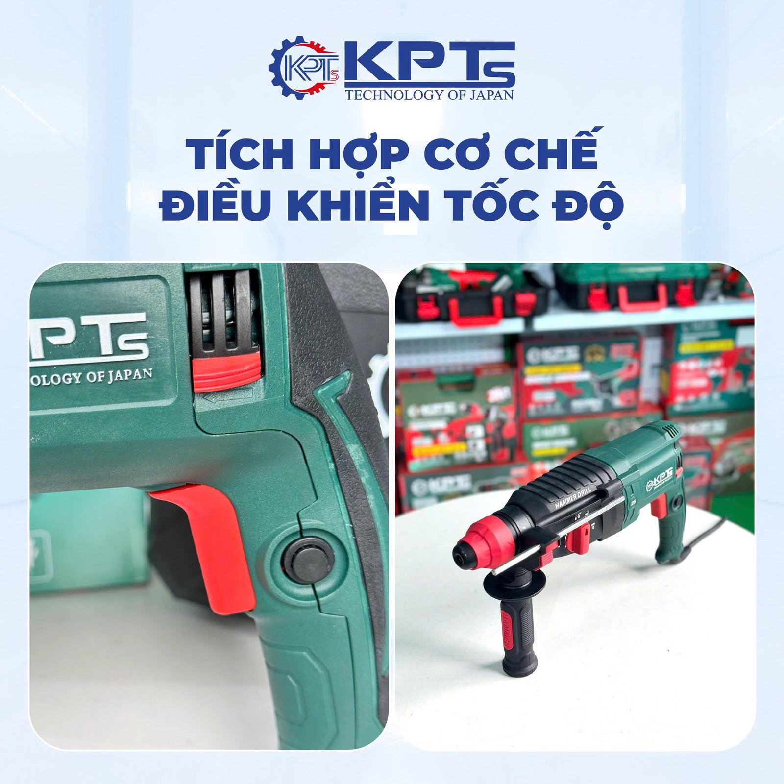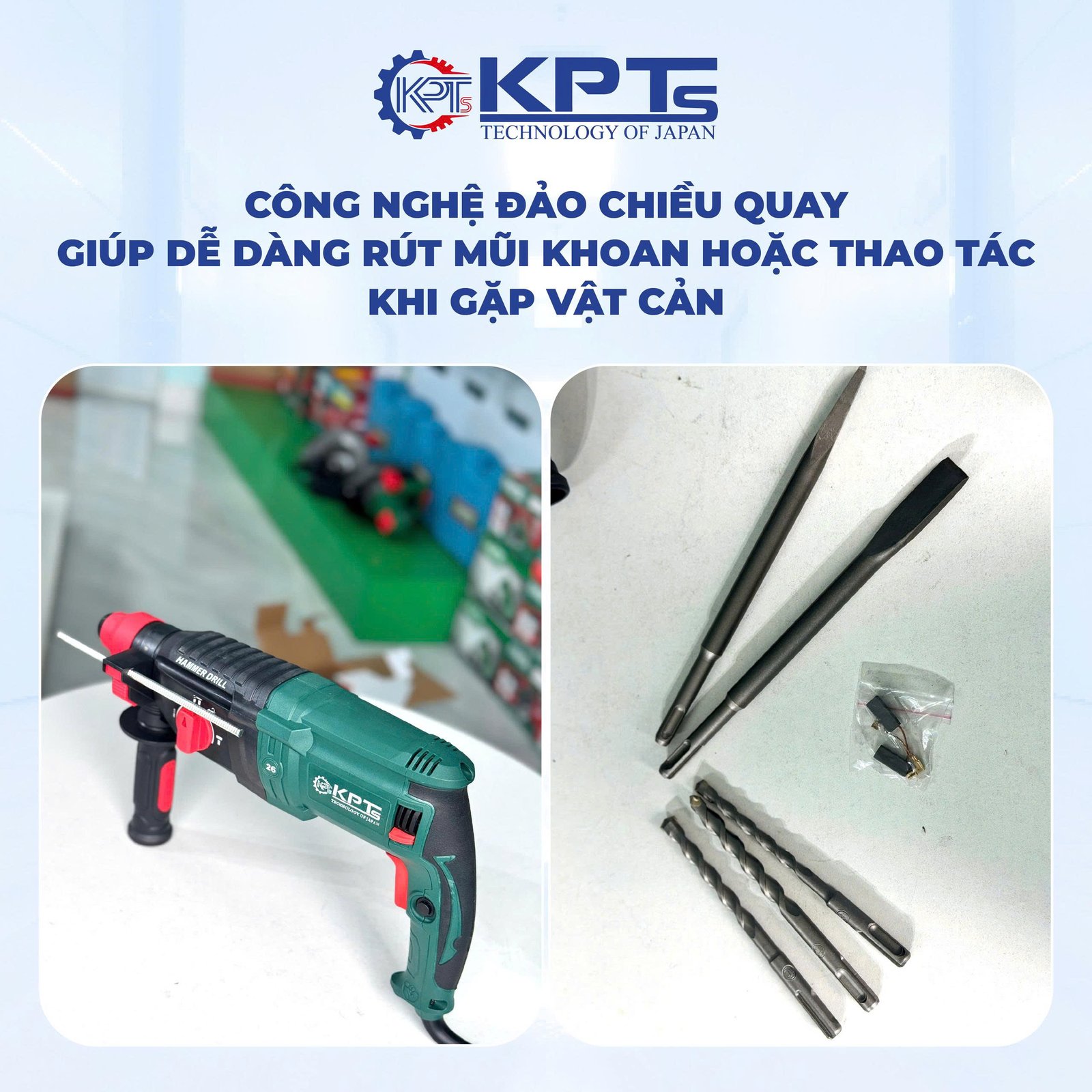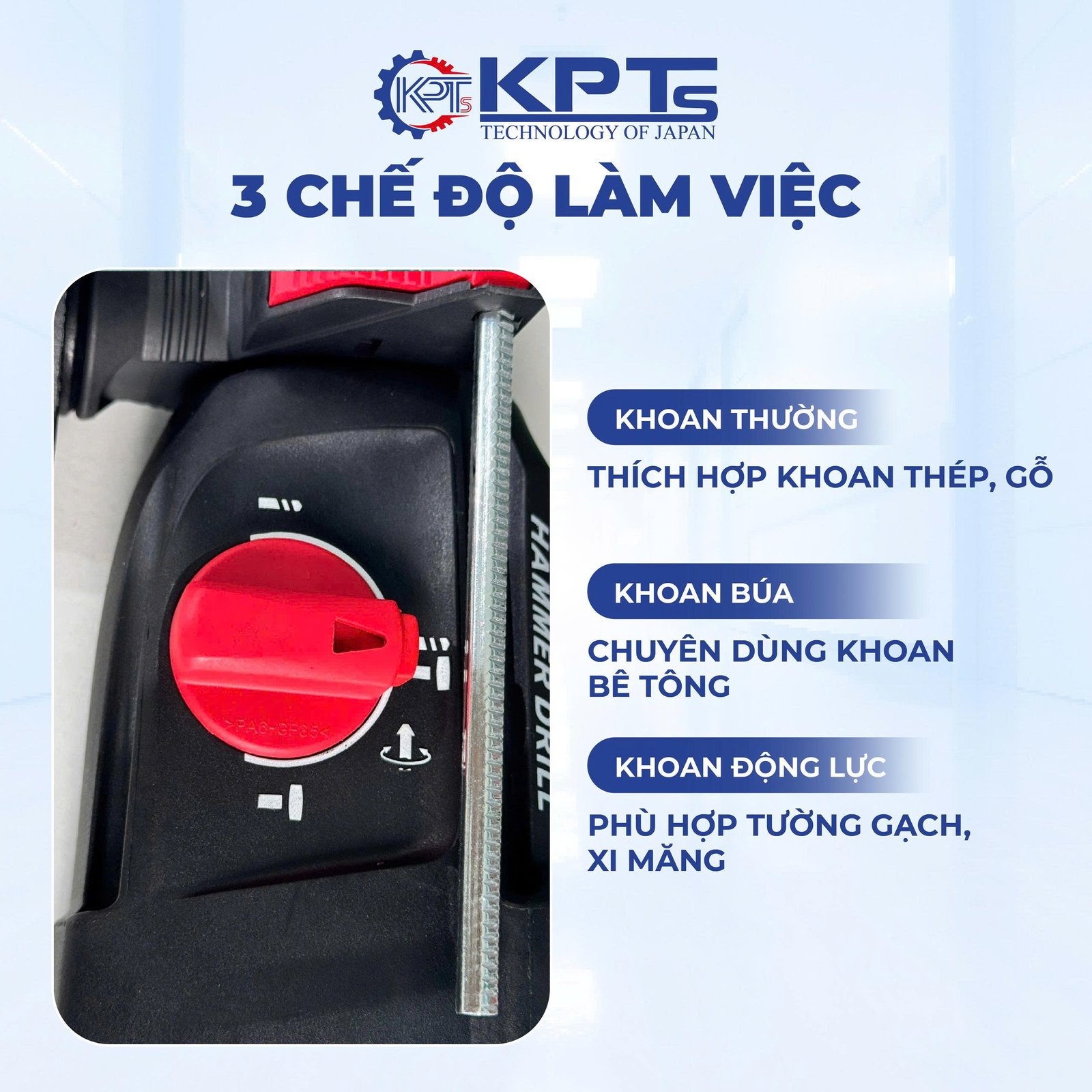Nhờ 3 chế độ này, chỉ cần 1 chiếc KPT-2601 New, anh em thợ có thể xử lý gần như mọi nhu cầu khoan phổ biến.
