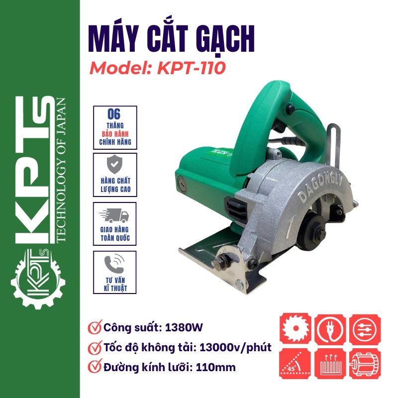 Máy cắt gạch cầm tay KPTs KPT-110 là máy cắt chuyên dụng trong thi công xây dựng dùng để cắt các loại gạch như gạch men, gạch bóng, gạch ống sàn, gạch lát nền một cách nhanh chóng và thẩm mỹ nhất.