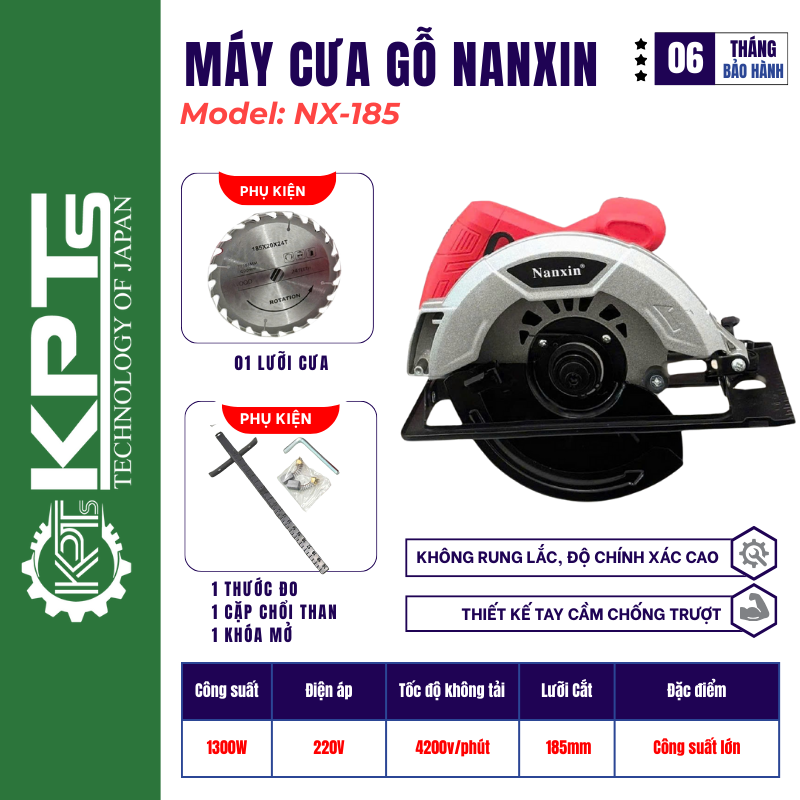 Cưa gỗ cầm tay NANXIN NX-185 được sản xuất theo công nghệ tiên tiến với công suất lên đến 1300W.