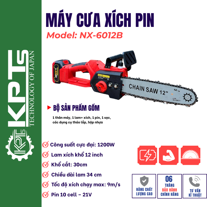 Thông số kĩ thuật máy cưa xích pin NANXIN NX-6012B