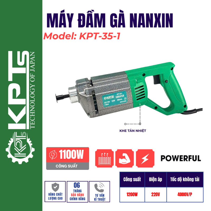 Máy đầm gà KPT-35-1 là loại máy dùng trong ngành bê tông xây dựng, phù hợp với các công trình như đổ mái nhà, nền sân xưởng, mương máng, cọc cống,…