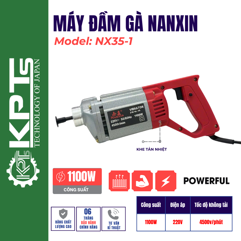 Máy đầm gà Nanxin là sản phẩm được sử dụng rộng rãi trong các công trình xây dựng, máy được sử dụng động cơ có công suất 1100w và nguồn điện 220V nên phù hợp với cả các công trình lớn và các công trình dân dụng.