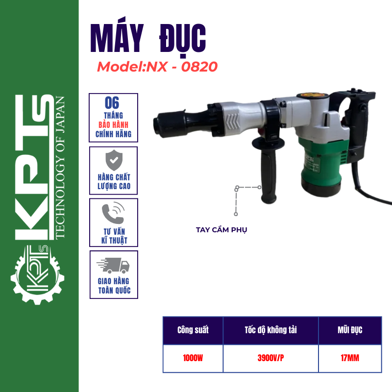 Ngoài công suất nổi bật KPT-0820 còn được thiết kế tay cầm gọn nhẹ, khỏe khoắn, chống trơn trượt và giá thành hợp lý, sẽ là sự lựa chọn hàng đầu trong số các máy đục bê tông hiện nay.