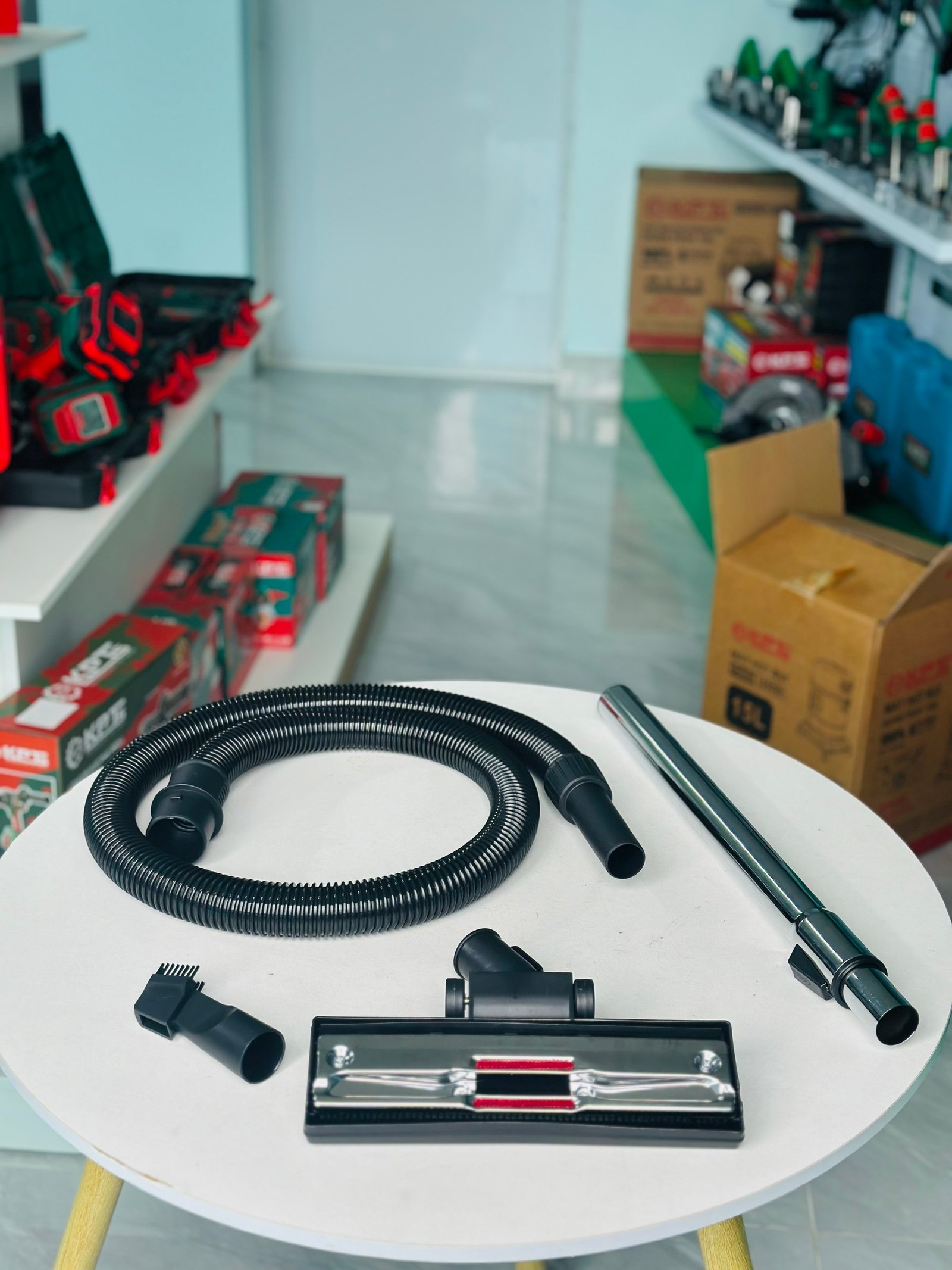 Máy có dung tích 15L có thể hút khô và ướt cùng 3 đầu hút có thể thay đổi rất tiện dụng.