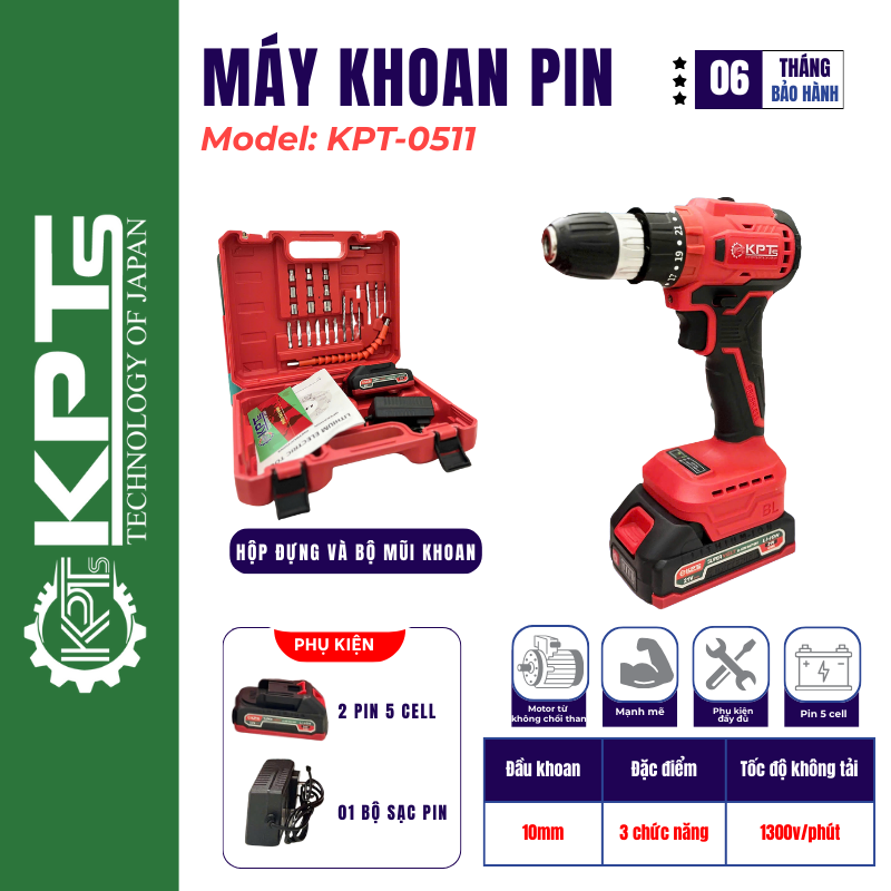 Thuộc dòng máy đầu 10 li, KPT-0511 đảm bảo cho những mũi khoan mạnh mẽ và chính xác.