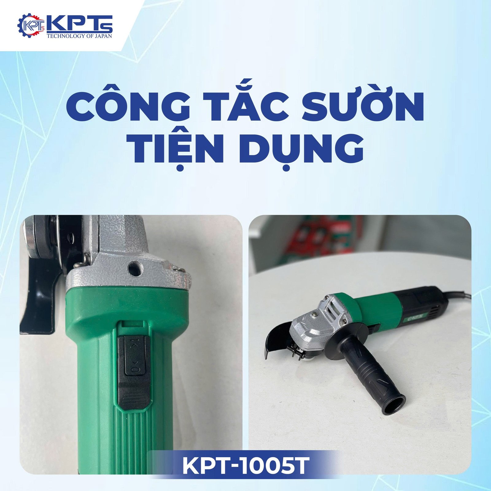 Máy mài góc cầm tay KPTs 1005T : là sản phẩm cầm tay được thiết kế nhỏ gọn, dễ sử dụng với rất nhiều tính năng dùng để mài các ba via, làm nhẵn mối hàn, các cạnh sắc ở các vị trí nhỏ hẹp, ngóc ngách.